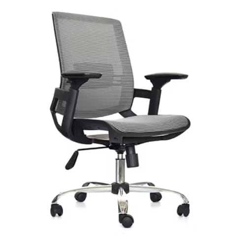 💼 Silla Holanda Ejecutiva Cromada gris con respaldo de malla y brazos 3D