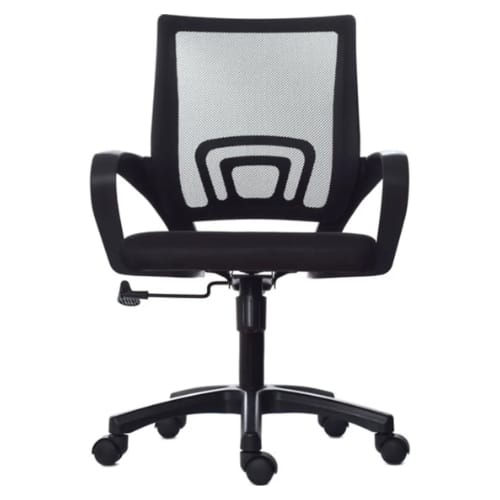 Equipada con rodachines de nylon de alta resistencia y una base cromada de 5 puntas de 60 cm de diámetro, proporciona estabilidad y movilidad suave en todo tipo de superficies. Su mecanismo basculante permite ajustar el ángulo de inclinación para mayor comodidad, mientras que los brazos fijos de polipropileno y el soporte lumbar fijo brindan un apoyo adicional.
